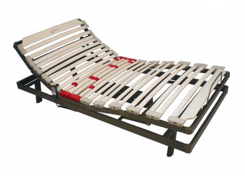 Frame structure in 60x20 steel tube and 40x20 bed structure with a thickness of 1.5 mm. Pure polyester paint finish. High impact resistance. Ral 8117.5 articulated planes, with articulation in the cervical area. Polyamide joints that guarantee the absence of noise and smoothness of movement. Electric drive motor of 4000 N, low voltage (24 V) with battery in the motor for lowering the bed in case of power failure. Electronic control by cable with remote control option. Vaporized beech wood slats flexible. Lumbar zone with bi-slat firmness regulation system. Slat suspensions in thermo rubber. Arch on the footboard and on the sides to hold the mattress.